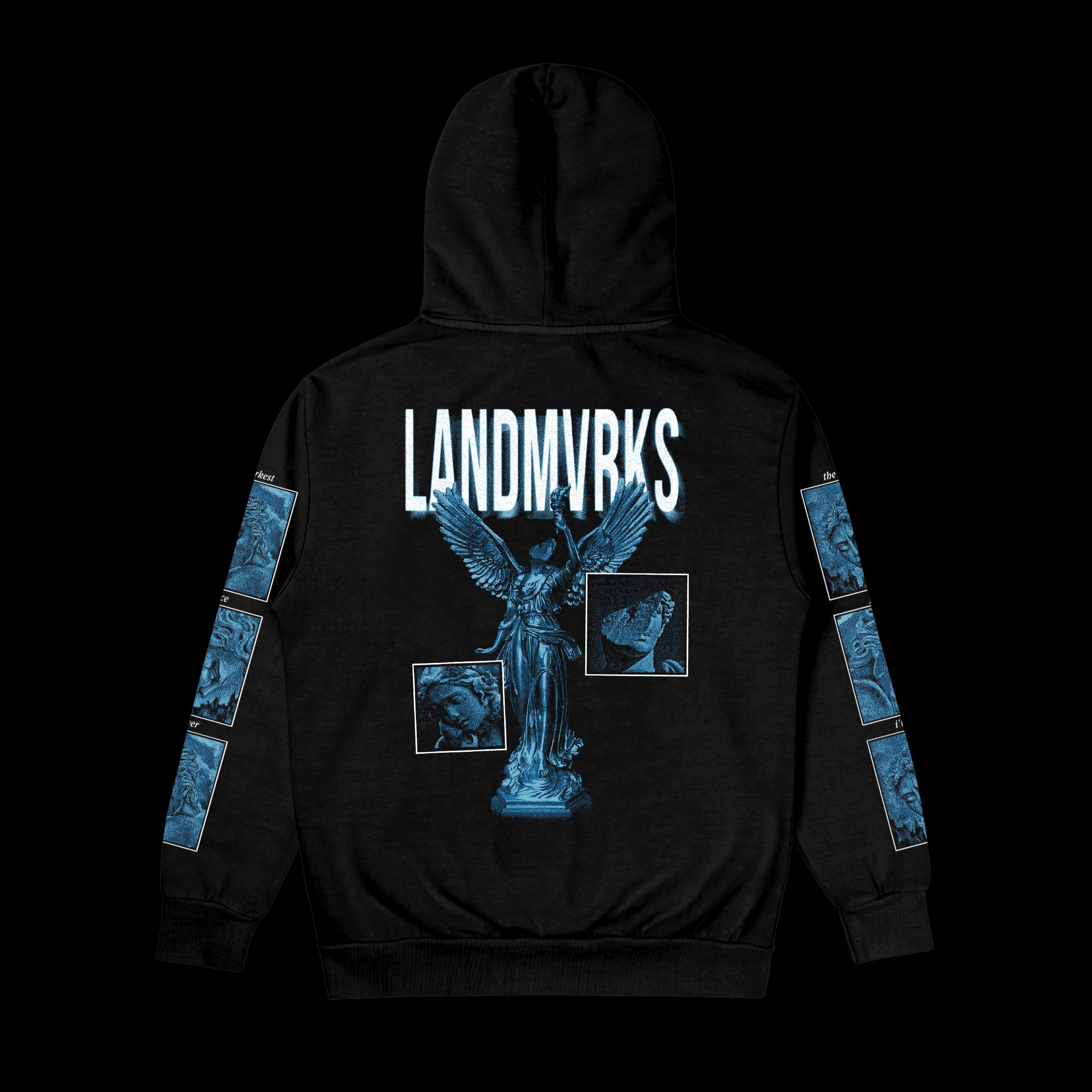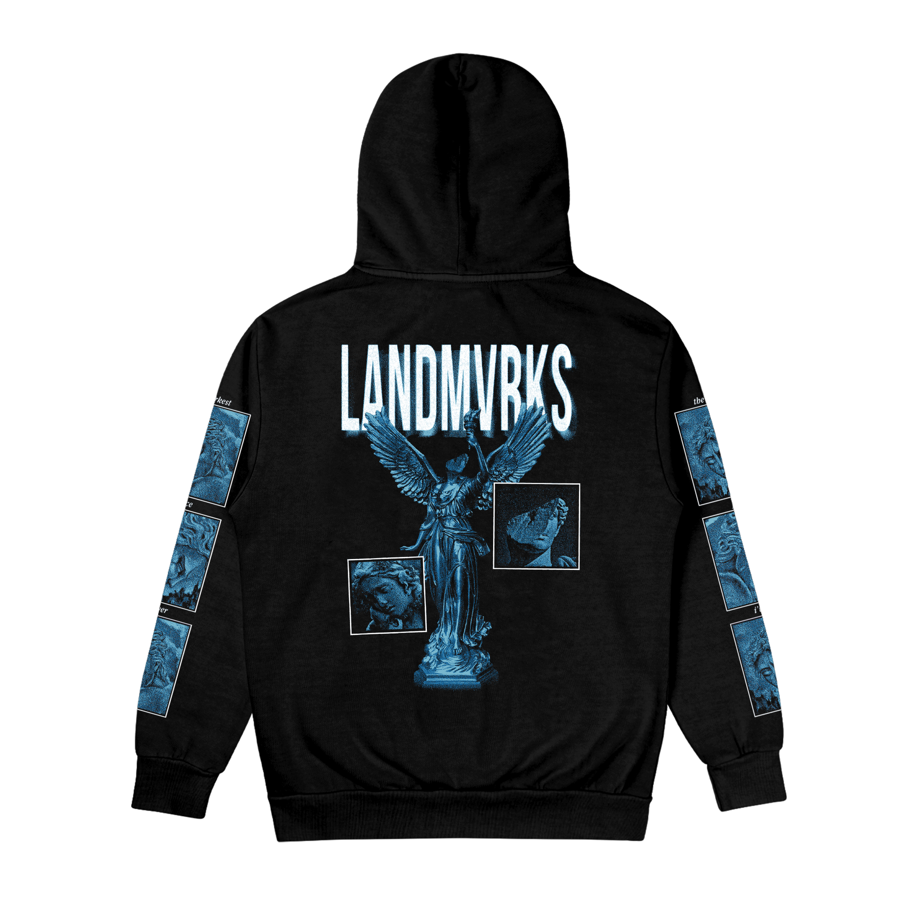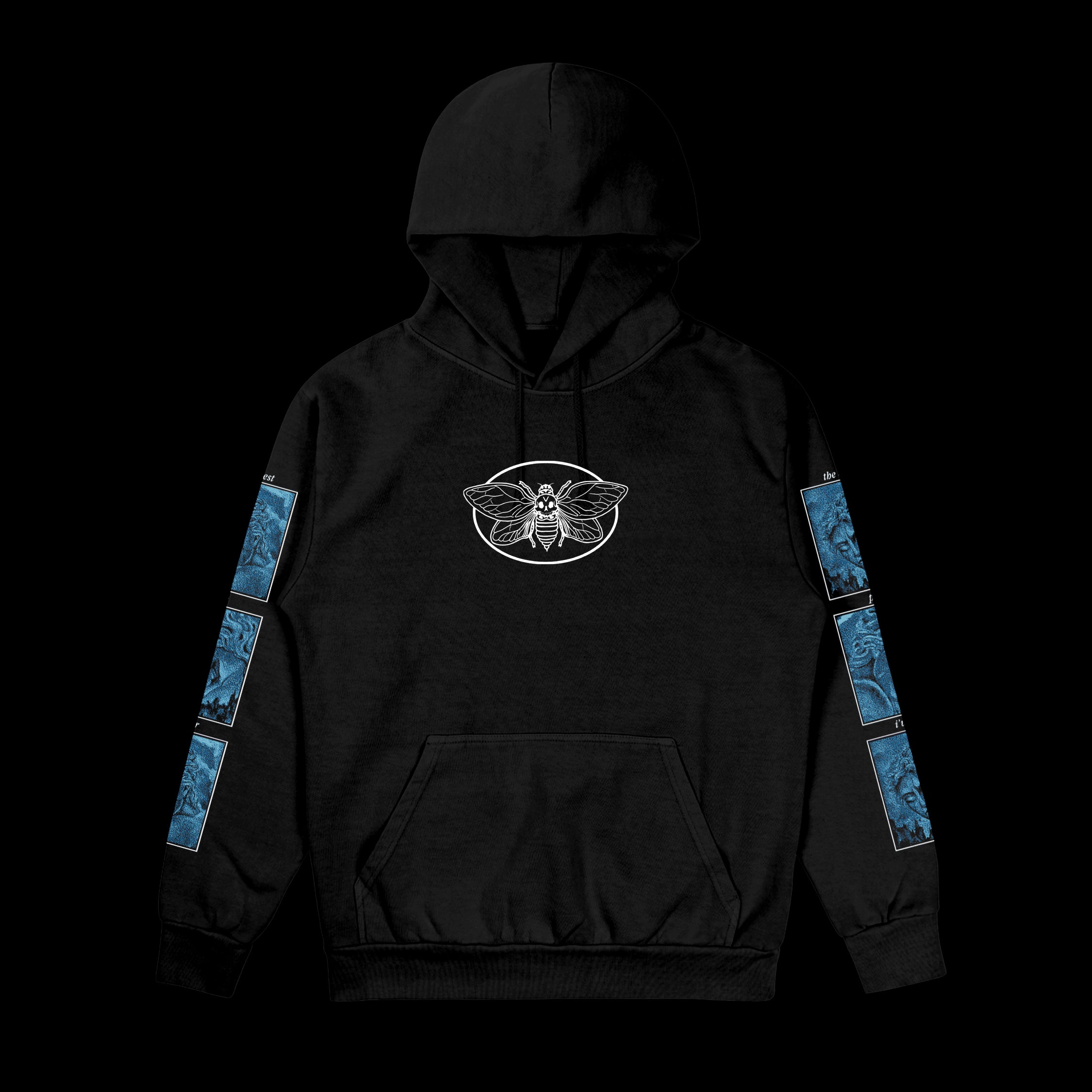 Screen printed on a black 50/50 cotton/polyester hoodie with a classic fit.
